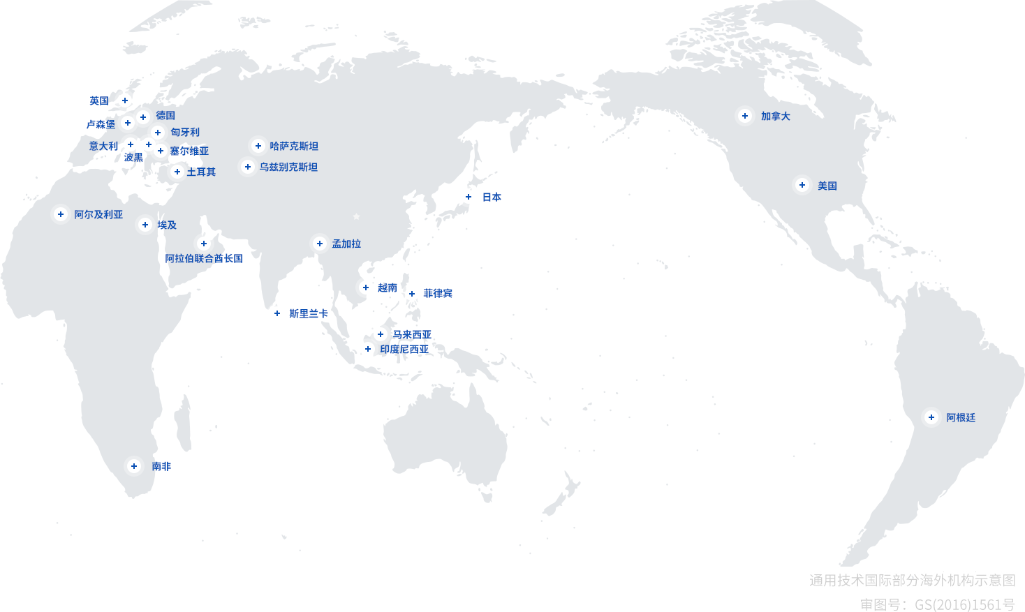 國際通用 通用技術(shù)國際致力于服務(wù)全球市場,在世界范圍內(nèi)廣泛尋求合作,構(gòu)建了覆蓋面廣、反應(yīng)迅速的國際市場經(jīng)營網(wǎng)絡(luò),公司業(yè)務(wù)遍布五大洲的100多個(gè)國家和地區(qū)。